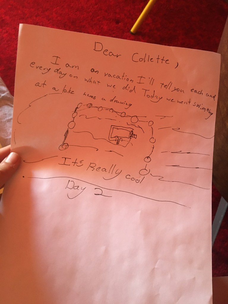 I checked the Jungle Room desk drawer for my sister’s (clearly) unsent letter to a friend from probably 2009. Still there, and still hilarious given that her promise of a daily report of events did not come to fruition (the events of day one are listed in detail while “Day 2” is a title and nothing more).