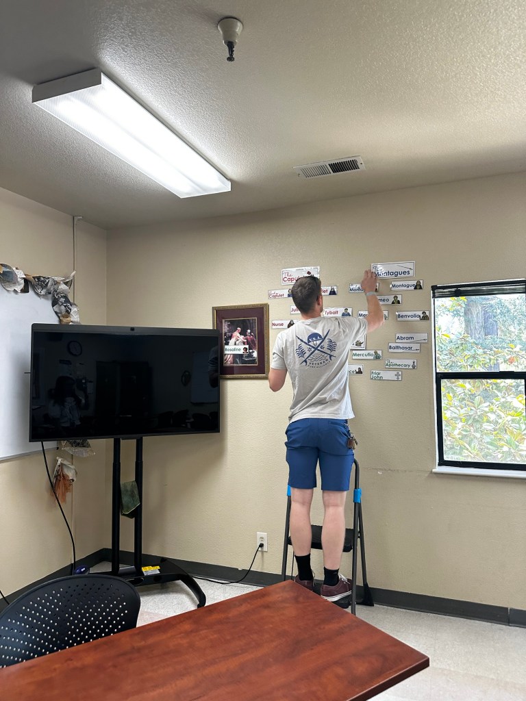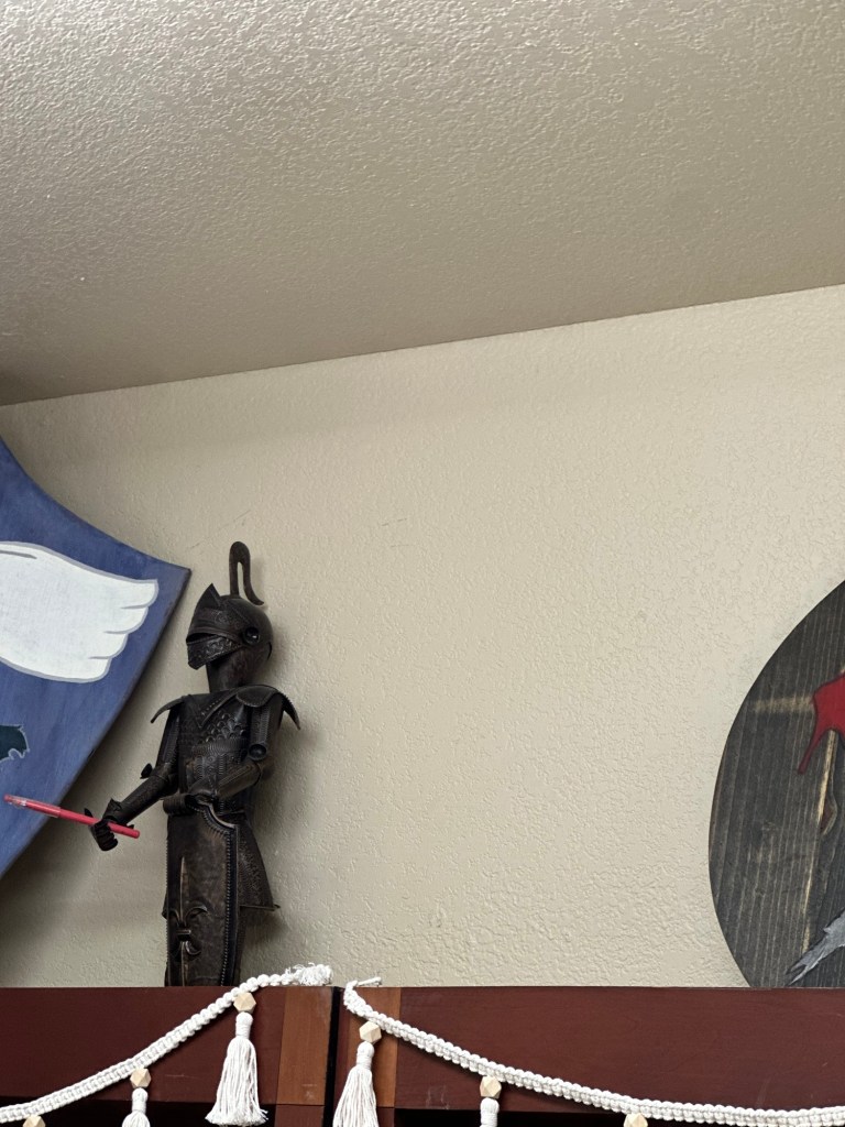 As we clean the last few things from my room, Daryl, my dearest friend and partner teacher, helps me take down my knight statue from the top of the bookshelf.